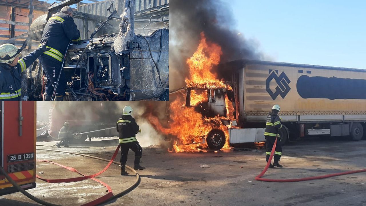 Eskişehir’de 3 tırın ortasında bulunan bir tırda çıkan ve kısa sürede 2 tıra daha sıçrayan yangın itfaiye ekiplerinin müdahalesiyle kontrol altına alındı.