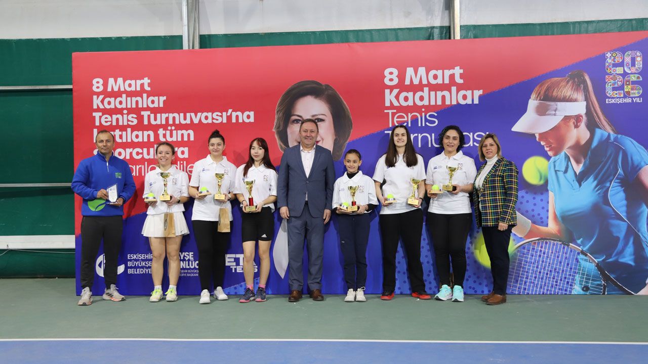 Büyükşehir Belediyesi, Dünya Emekçi Kadınlar Günü’nü sporun birleştirici ve güçlendirici ruhuyla kutladı. Büyükşehir Belediyesi Gençlik ve Spor Hizmetleri Dairesi Başkanlığı ile Eskişehir Tenis Akademisi iş birliğinde düzenlenen “8 Mart Kadınlar Tenis Turnuvası”, final karşılaşmaları ve ödül töreniyle tamamlandı.