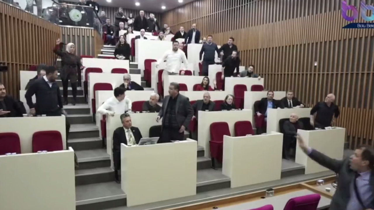 Bolu Belediyesi'nin meclis toplantısında AKP'li Meclis Üyesi Hacer Çınar, Bolu Belediye Başkanı Tanju Özcan'a su şişesi fırlattı.