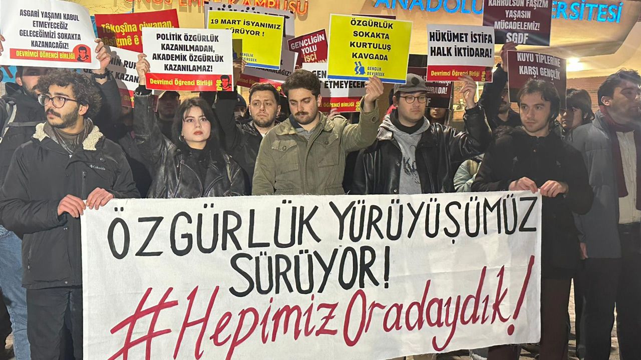 Anadolu Üniversitesi öğrencileri adına Yağmur Tokca tarafından Yunus Emre Kampüsü kapısı önünde yapılan basın açıklamasında, 19 Mart ayaklanmasının ardından yaşanan tutuklamalar ve öğrencilere yönelik baskılar protesto edildi. Açıklamada, dokuz aydır süren öğrenci direnişinin kararlılıkla devam ettiği vurgulandı.