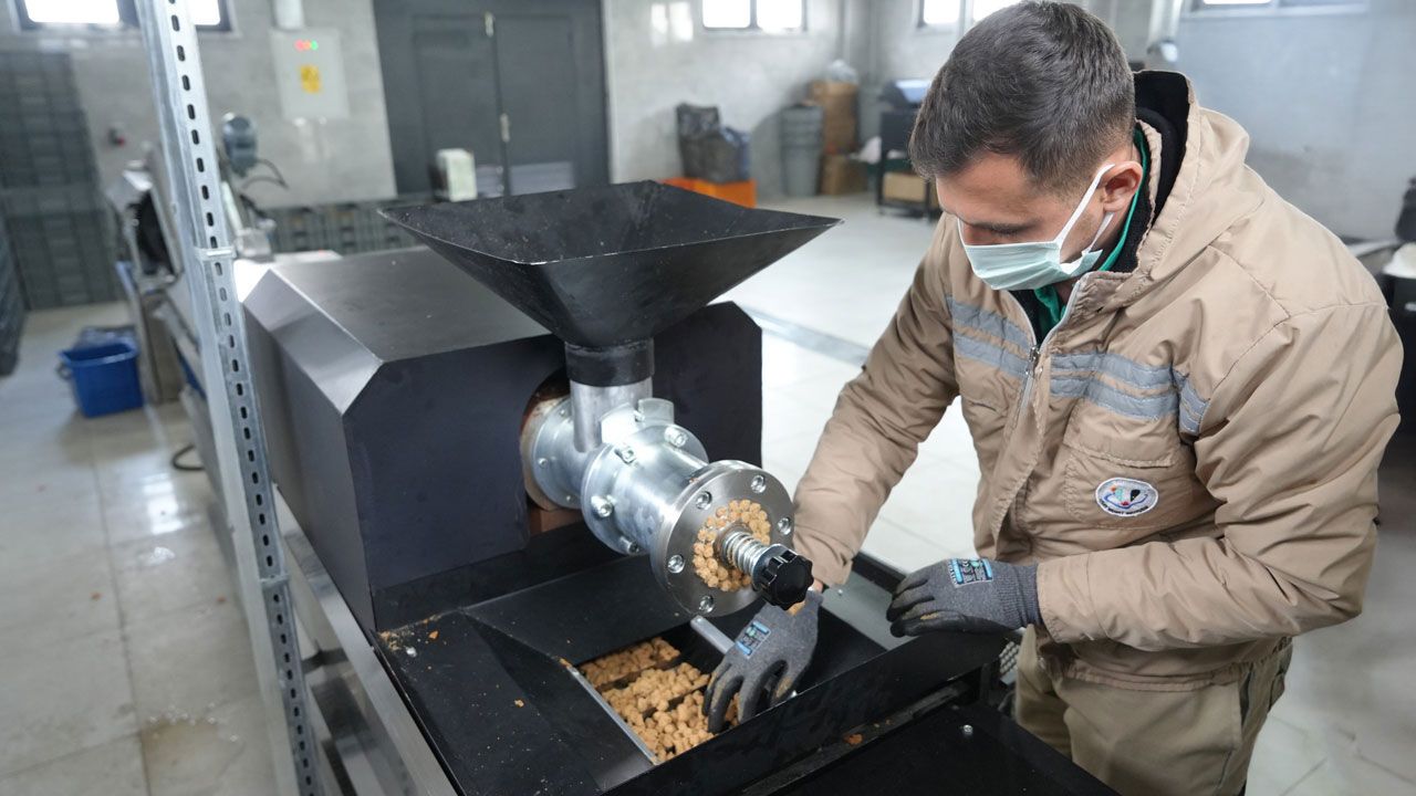 Büyükşehir Belediyesi Veteriner İşleri Dairesi Başkanlığı Hayvan Bakımevi bünyesinde kurulan tesiste; hastanelerden, üniversitelerden ve çeşitli kurumların mutfaklarından toplanan artık yemek ve ekmekler, bir dizi işlemden geçirilerek yüksek besin değerine sahip köpek mamasına dönüştürülüyor.