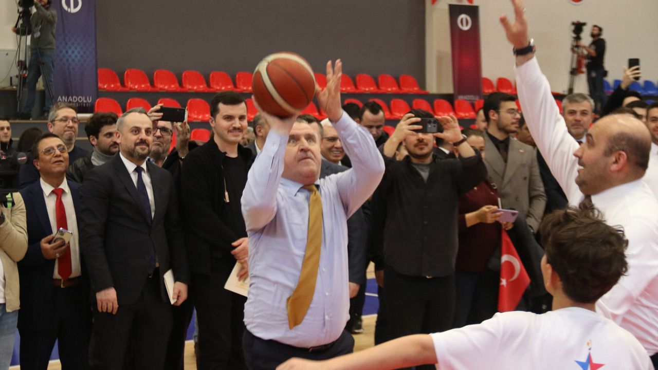 Eskişehir’de Yunus Emre Kapalı Spor Salonu’nun açılışına katılan Gençlik ve Spor Bakanı Osman Aşkın Bak, törenin ardından gençlerle birlikte sahaya indi. Basketbol ve voleybol oynayan Bakan Bak, açılışı sadece kurdele keserek değil, pota altına girerek tamamladı.