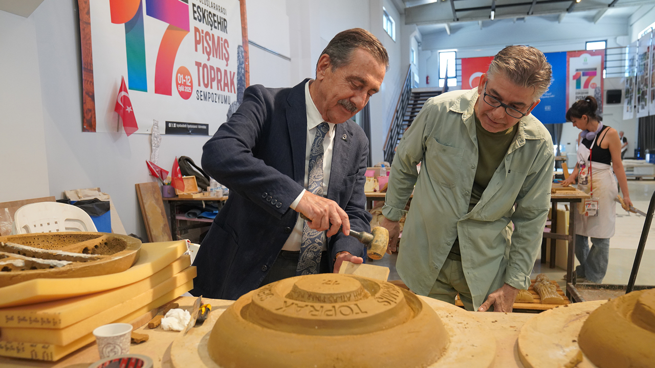 Tepebaşı Belediye Başkanı Dt. Ahmet Ataç, 17. Uluslararası Eskişehir Pişmiş Toprak Sempozyumu sanatçılarını çalışma alanlarında ziyaret etti. Başkan Ataç, sanatçı Ekrem Kula’nın çalışmasına katkıda bulundu.