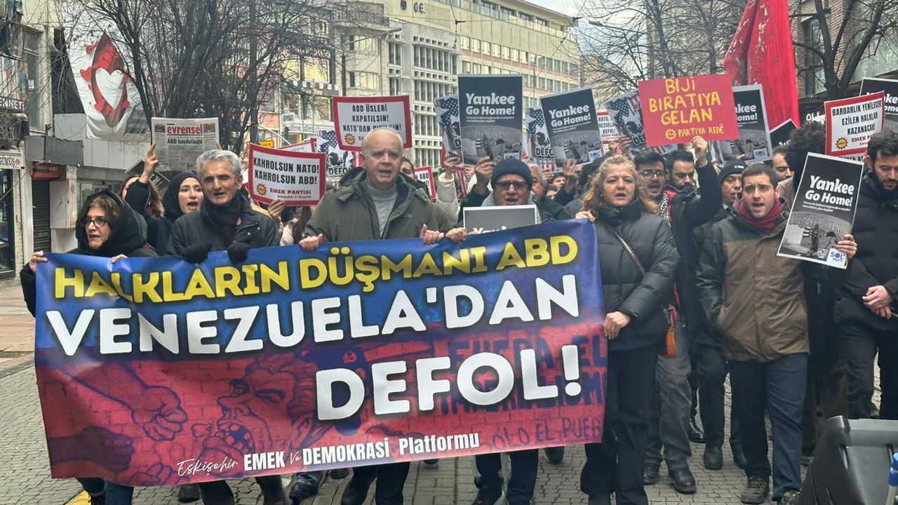 Eskişehir Emek ve Demokrasi Platformu adına konuşan Ceren Kökoğlu, Amerika Birleşik Devletleri’nin Venezuela’ya yönelik politikalarına sert tepki gösterdi. Kökoğlu, ABD’nin saldırgan tutumunu “açık bir emperyalist saldırı” olarak nitelendirerek, bunun demokrasi ya da uyuşturucuyla mücadeleyle ilgisinin olmadığını söyledi.