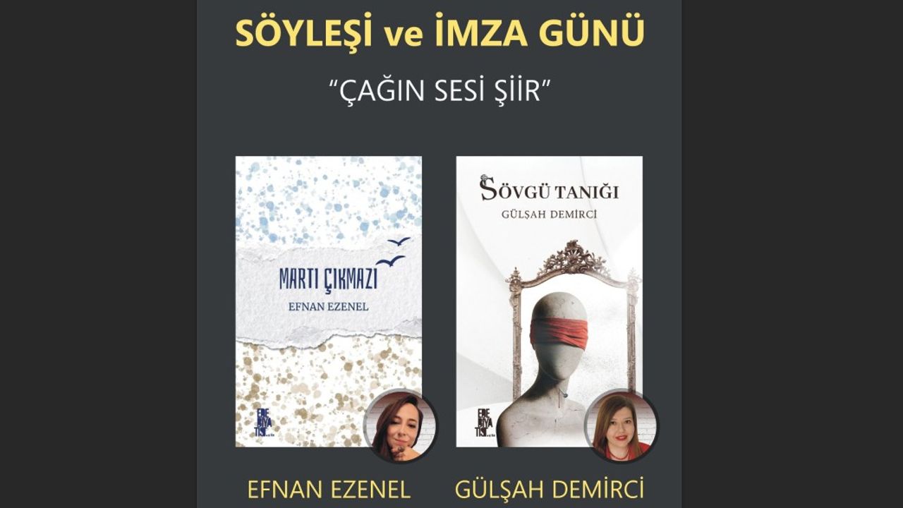 Çağdaş Türk şiirinin genç ve güçlü kalemleri Efnan Ezenel ile Gülşah Demirci, “Çağın Sesi Şiir” başlığıyla düzenlenecek kitap tanıtım, söyleşi ve imza günü etkinliğinde okurlarıyla buluşacak.
