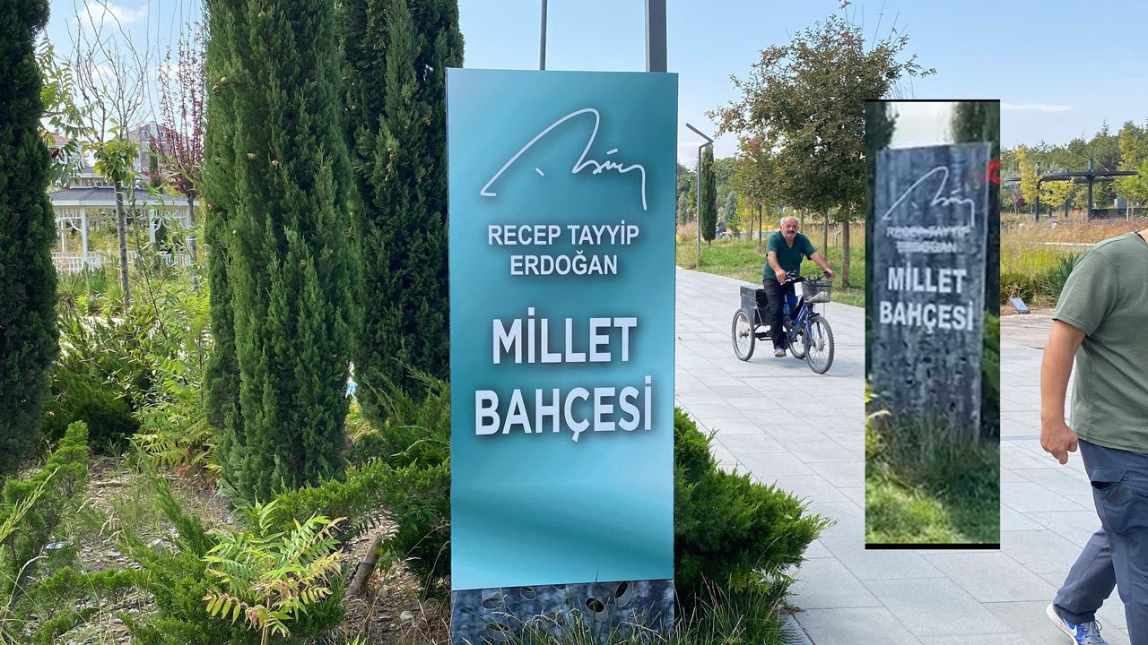 Eskişehir’de Millet Bahçesi’nin girişlerinde Recep Tayyip Erdoğan’ın isminin kazındığı tabelalar Vali Hüseyin Aksoy’un talimatıyla hızlıca yenilendi.