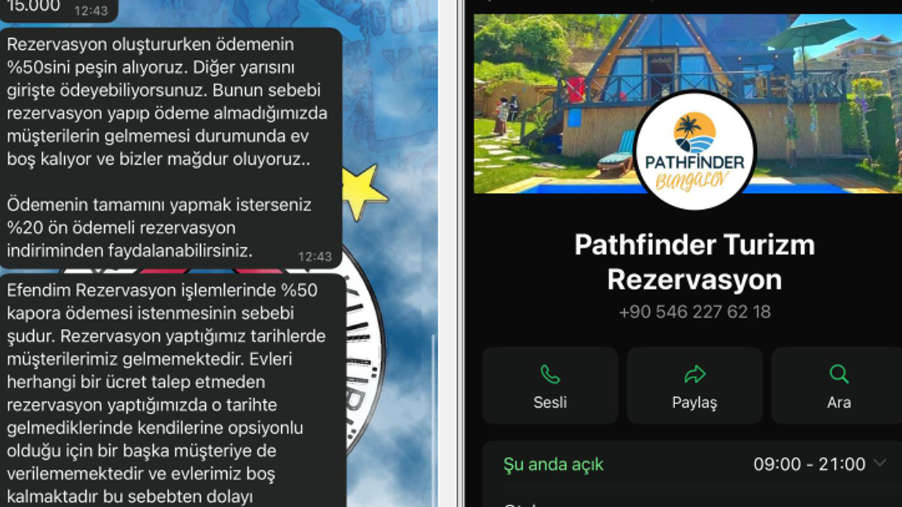 Eskişehir Cumhuriyet Başsavcılığı’na başvuran iş insanı Mete Yılmaz, adına kayıtlı Pathfinder Turizm Seyahat Acentesi bilgileri kullanılarak dolandırıcılık yapıldığını belirtti. Yılmaz, savcılığa verdiği ifadede sahte sosyal medya hesaplarında “Pathfinderbungalovtur” ismiyle faaliyet gösterildiğini ve logolarının izinsiz kullanıldığını aktardı.