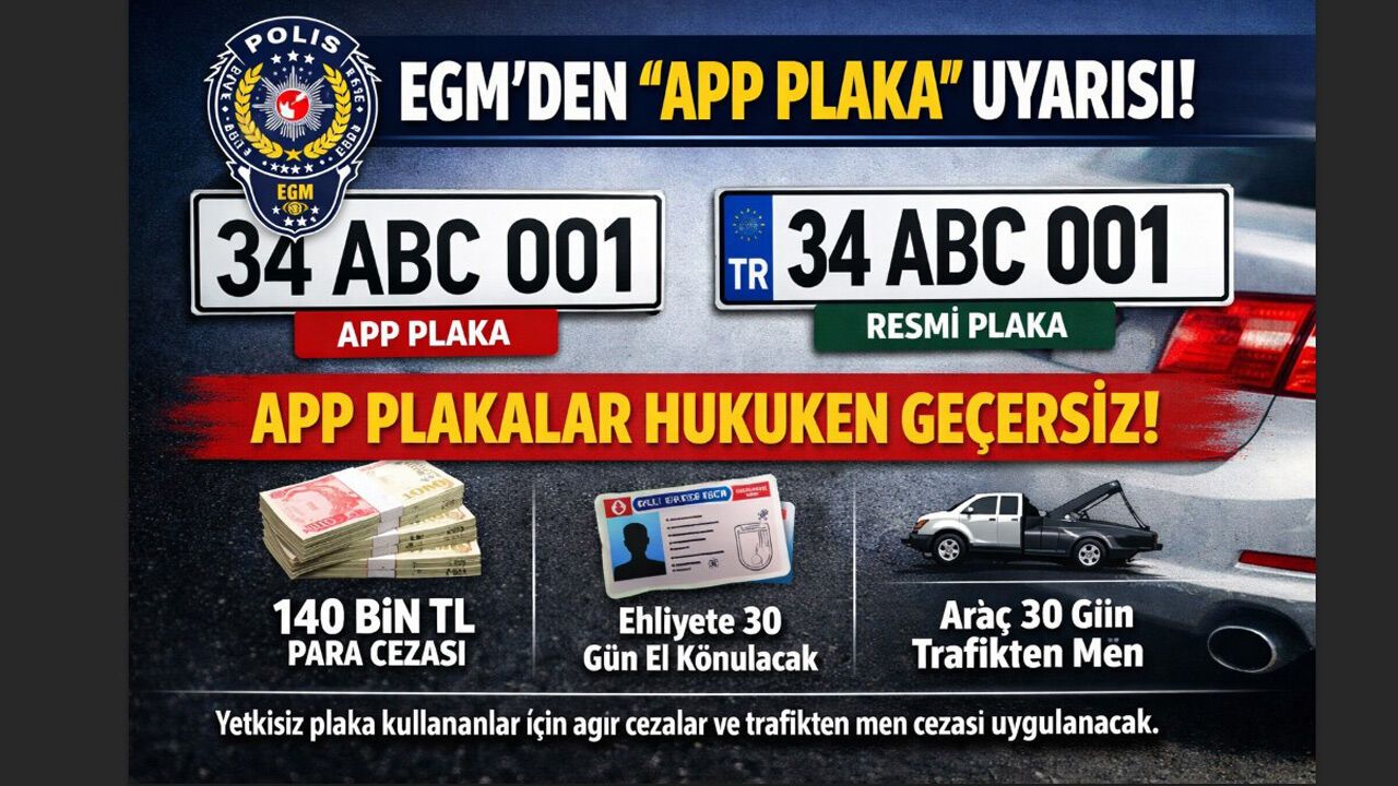 EGM'nin sosyal medya hesabı üzerinden yapılan açıklamada, "Son günlerde kamuoyunda ‘APP plaka' olarak bilinen plakalar ve bu plakaların kullanımına ilişkin yaptırımlar hakkında çeşitli değerlendirmeler ve yanlış anlaşılmaların ortaya çıkması nedeniyle konu hakkında açıklama yapılması gereği duyulmuştur. 2918 sayılı Karayolları Trafik Kanunu'nun ‘Belge ve plakaların araçlar üzerinde bulundurulması zorunluluğu' başlıklı 23'üncü maddesinde plaka kullanımına ilişkin kurallar ve yaptırımlar açık şekilde düzenlenmiştir. Kanun'un 23'üncü maddesinin üçüncü fıkrasına aykırılık durumunda; yönetmelikte belirtilen nitelik veya ölçülere aykırı plaka takan ya da araç üzerinde bulunması gereken sayıda plaka takmayan sürücülere 4 bin Türk Lirası idari para cezası uygulanmaktadır. Ayrıca bu fıkra hükmü yeni getirilmiş bir düzenleme olmayıp 2016 yılından bu yana uygulanmaktadır" denildi.