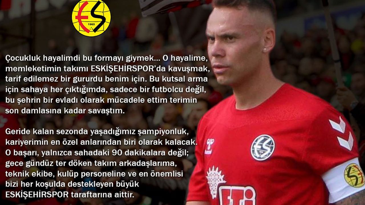 Eskişehirspor’un şampiyonluk yaşadığı kadroda önemli bir yer tutan futbolcusu Erdin Üzer, sosyal medya hesabından yayımladığı duygusal bir mesajla kulübe veda etti. Üzer, memleketinin takımı Eskişehirspor’da forma giymenin çocukluk hayali olduğunu belirtti.