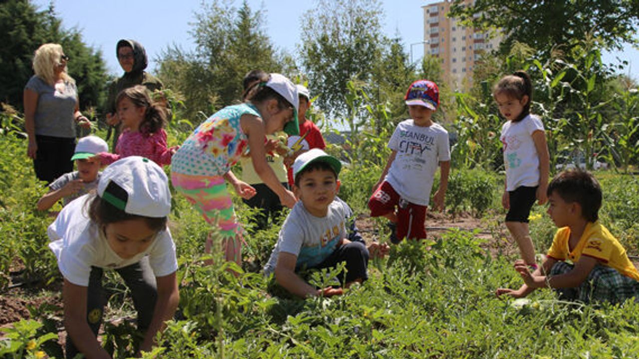 Eskişehir Büyükşehir Belediyesi’nin Avrupa Birliği projeleri kapsamında bir sosyal sorumluluk projesi olarak kurduğu Es Çocuk Evi’nde eğitim gören 3-6 yaş grubu öğrenciler, Park ve Bahçeler Daire Başkanlığı ile Sosyal Hizmetler Daire Başkanlığı ortaklığında kendileri için kurulan bahçede tarımsal üretimi öğreniyor. Öğretmelerinin onlar için hazırladığı bahçede kavun, karpuz, çilek, mısır, biber, taze fasulye, salatalık, domates ve patlıcan gibi sebze ve meyvelerin gelişimine şahit olan çocuklar, hem bitkileri tanıyor hem de toprakla uğraşarak eğlenceli vakit geçiriyorlar. Üretim yapılan alanda işbirliği ile çalışmayı da öğrenen çocuklar, topladıkları ürünleri eğitmenlerinin yardımıyla turşuya dönüştürdüler. Ayrıca dallarından taze olarak koparılan meyve ve sebzeler çocukların yemesi için hazırlanıyor. Yapılan yemeklerle çocukların sağlıklı besin ihtiyaçlarının da karşılandığını belirten yetkililer, Es Çocuk Evi’nin üretim bahçesinin çocukların gelişimi ve çevreyle olan bağlarının güçlenmesi için çok önemli olduğunu ifade ettiler.
