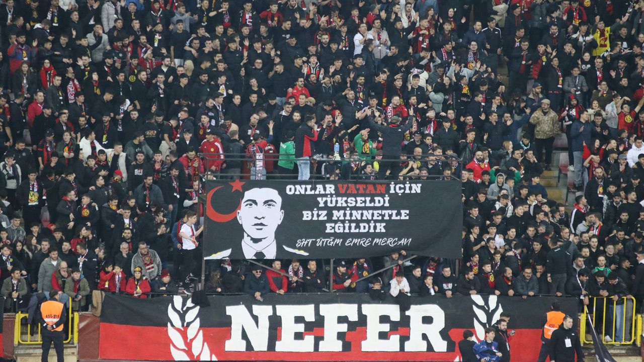 Azerbaycan'dan dönüşte, Gürcistan'da düşen askeri kargo uçağında 20 şehitten biri de 27 yaşındaki Eskişehirli Hava Uçak Bakım Üsteğmen Emre Mercan olmuştu. Bu durumu unutmayan Eskişehirspor taraftarları sahasında oynadığı Karşıyaka karşılaşmasında pankart açtı. Pankartta, "Onlar vatan için yükseldi, biz minnetle eğildik" sözleri ve Eskişehirli Hava Uçak Bakım Üsteğmen Emre Mercan'ın fotoğrafı da yer aldı. Bu durum stattaki diğer taraftarlardan da övgü topladı.