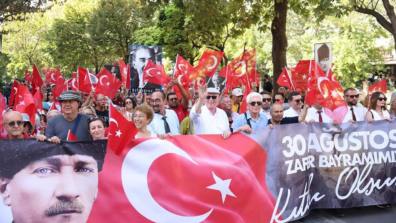 Yürüyüşte vatandaşlarla birlikte yer alan Odunpazarı Belediye Başkanı Kazım Kurt, “103 yıl önce emperyalizme karşı kazanılan bu büyük zafer, milletimizin özgürlük ve bağımsızlık iradesinin en güçlü ifadesidir. Ulu Önder Mustafa Kemal Atatürk ve silah arkadaşlarının mirası, bugün bizlere yol göstermeye devam ediyor. Cumhuriyetimizin ışığında, birlik ve coşkuyla haykırıyoruz: Yaşasın 30 Ağustos, yaşasın Cumhuriyet, yaşasın Mustafa Kemal Atatürk!” dedi.