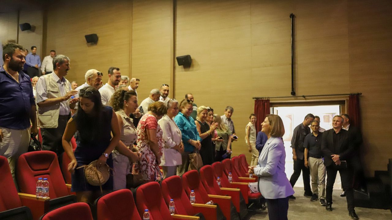 Odunpazarı ilçesindeki mahallelerin ihtiyaçlarının değerlendirilmesi ve yeni projeler hakkında bilgilendirme amacıyla düzenlenen toplantıda, Eskişehir Büyükşehir Belediye Başkanı Ayşe Ünlüce, mahalle muhtarlarıyla Eskişehir Şehir Tiyatroları Genco Erkal Sahnesi’nde bir araya geldi.