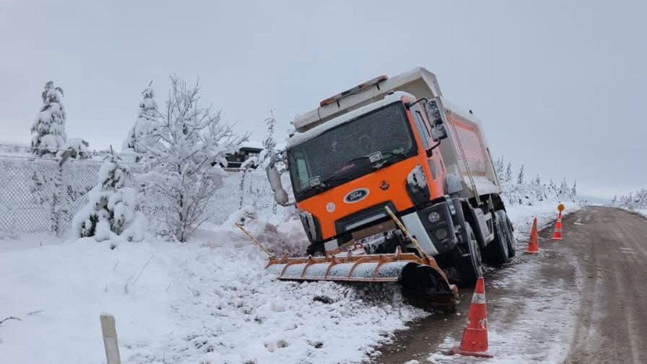Eskişehir’in Mihalıççık ilçesinde karlı yolları açmakla görevli kar küreme kamyonu yoldan çıktı.