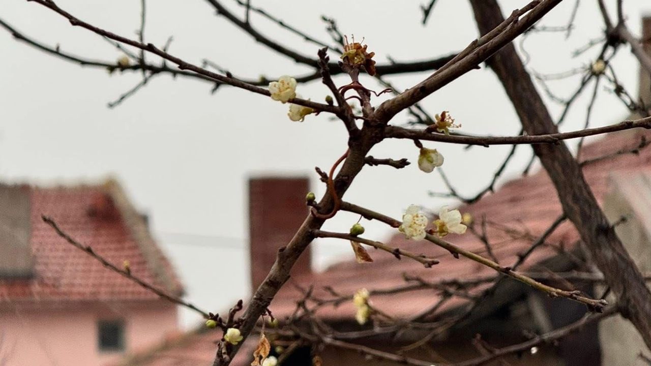 Eskişehir’in Mihalıççık ilçesinde güneşe aldanan bir kayısı ağacının dalları güneşe aldanıp tomurcuklandı. Çiçek açan ağacın dalları Aralık ayındaki soğuklar düşünüldüğünde şaşırttı. Muhtemel kırağı veya don olayıyla birlikte tomurcuk ve çiçeklerin döküleceğini belirten çevre sakinleri, bu durumun bahar aylarında ağaçtaki verimi düşüreceği tahmininde bulundu.