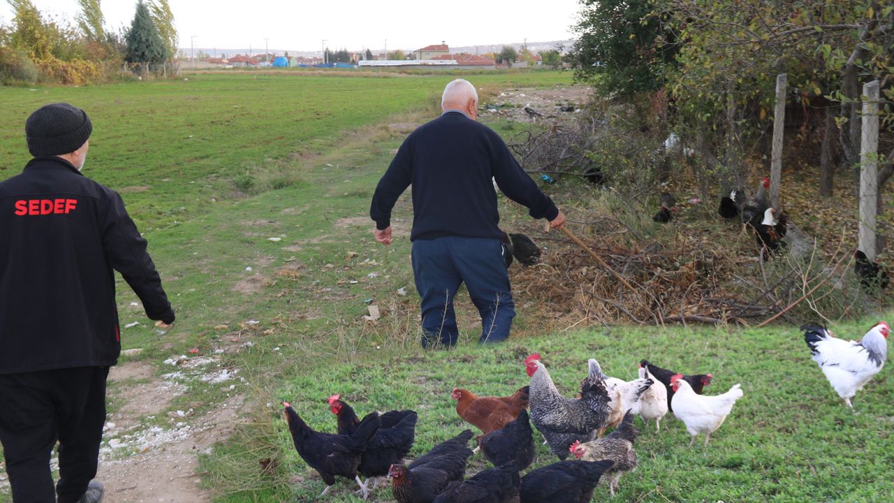 Eskişehir'de 11 tavuğu telef eden başıboş köpeklerden hayvanlarını korumak isteyen mahalleli çoban gibi gün boyunca dışarda onları güdüyor.