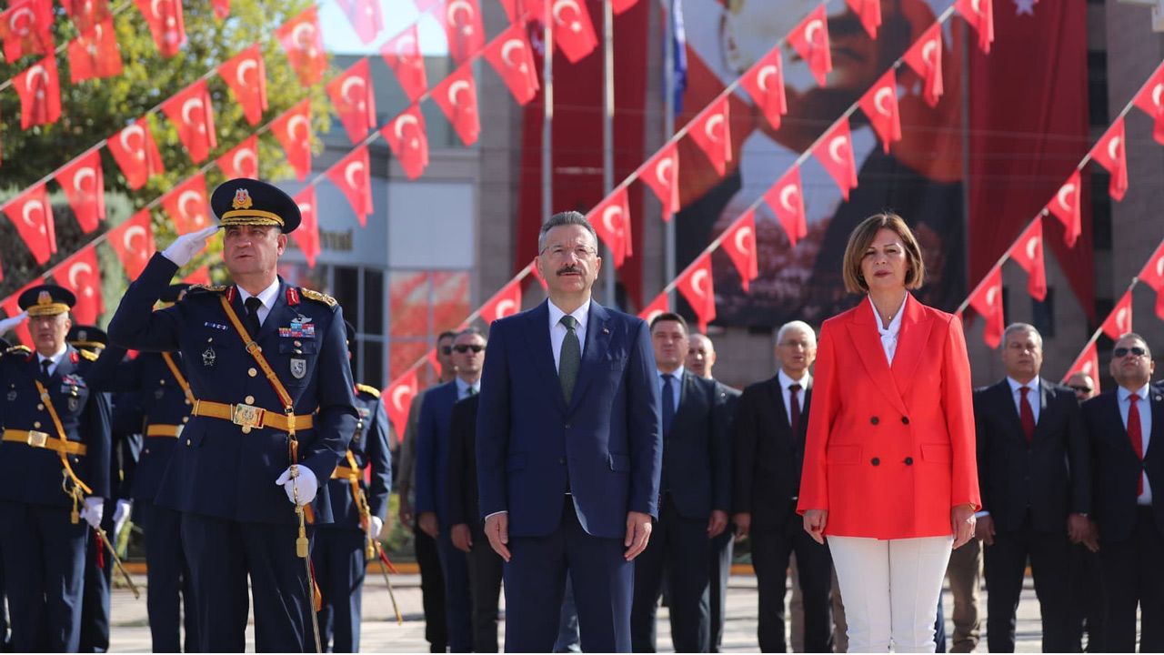 Eskişehir'de 30 Ağustos Zafer Bayramı ve Türk Silahlı Kuvvetleri Günü kutlamaları çerçevesinde Atatürk Anıtı'na çelenkler sunuldu.