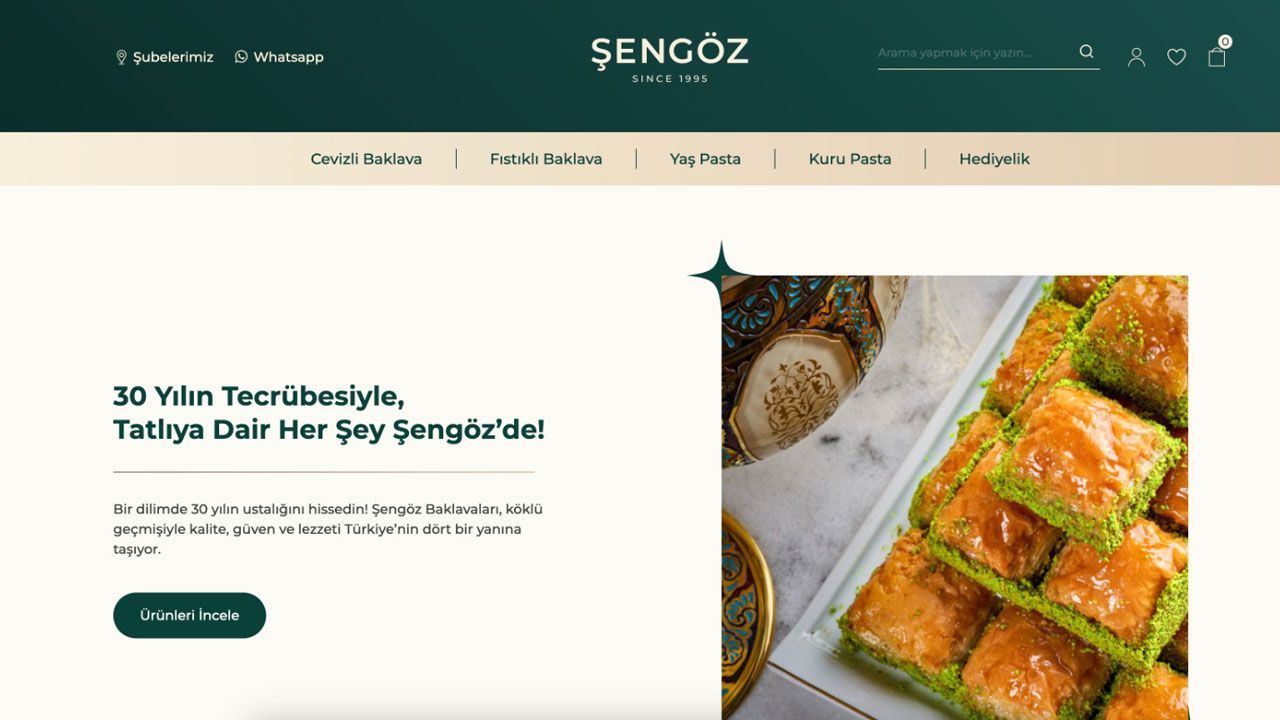 Şengöz, dijital dünyaya adım atarken Sıradışı Digital imzasını taşıyan kullanıcı dostu bir e-ticaret tasarımıyla yola çıktı. Modern tasarımı, kolay sipariş deneyimi ve güvenli ödeme seçenekleriyle sengozonline.com, lezzet tutkunlarını sadece birkaç adımda dilediği tatlıya kavuşturuyor.