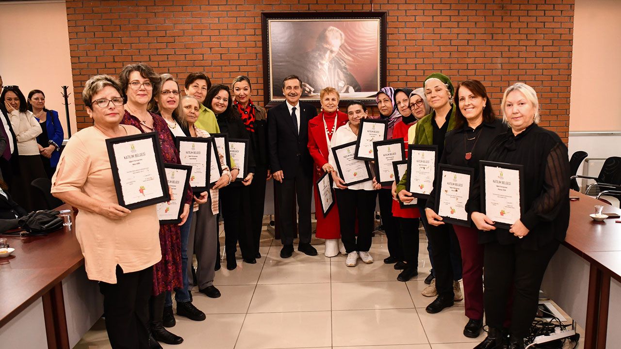 Konuşmaların ardından Başkan Ataç tarafından kursiyerlere katılım belgeleri verildi.