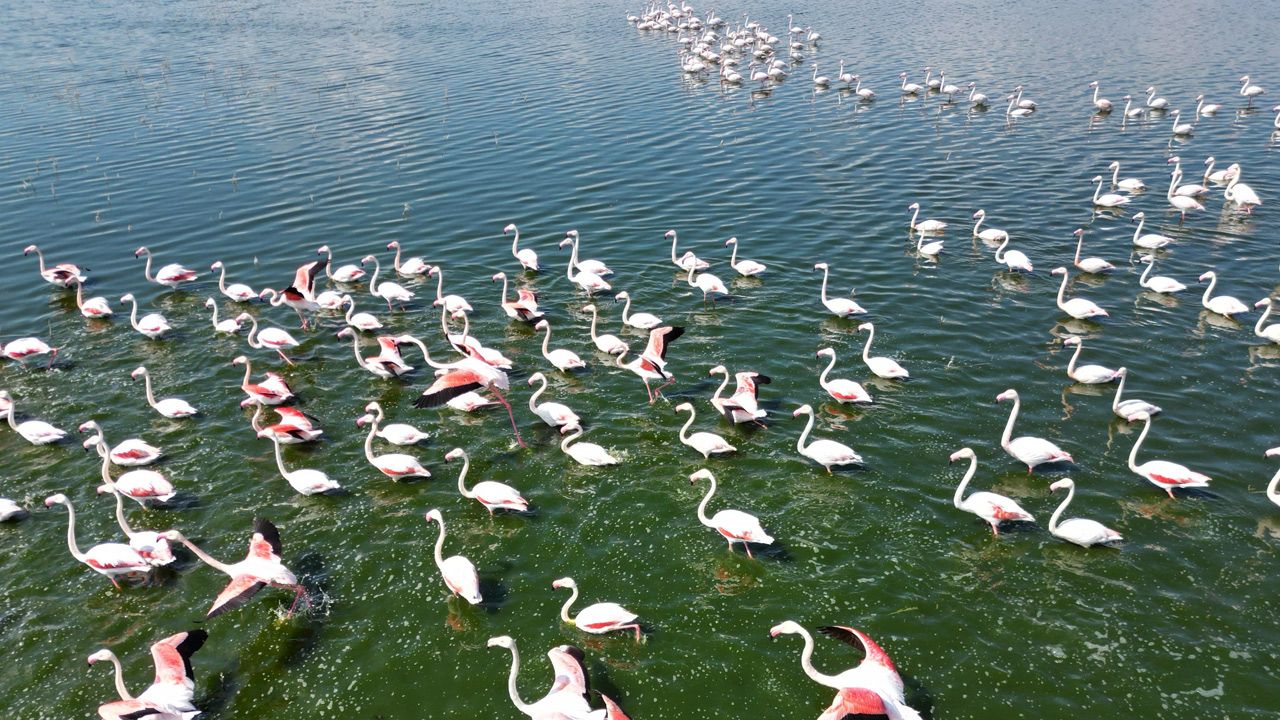 Türkiye’nin önemli sulak alanlarından biri olan Eber Gölü, çok sayıda kuş türünün yanı sıra göçmen kuşlar için de geçici konaklama noktası olmayı sürdürüyor. Bu yıl da Eber Gölü’ne uğrayan flamingoların yaklaşık bir hafta bölgede kalması bekleniyor.