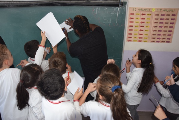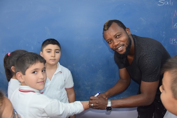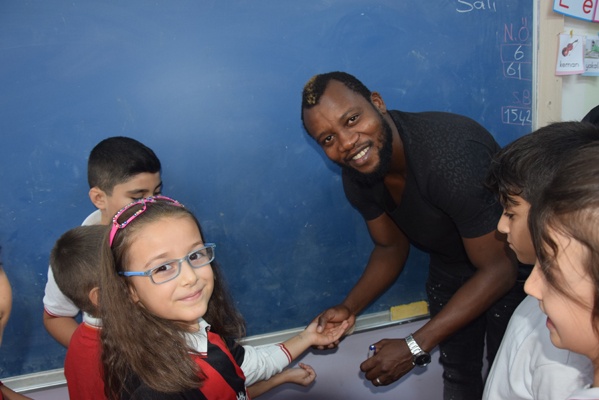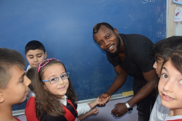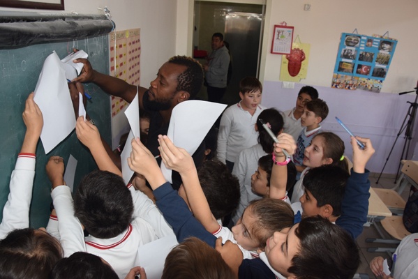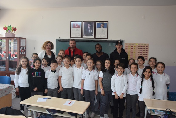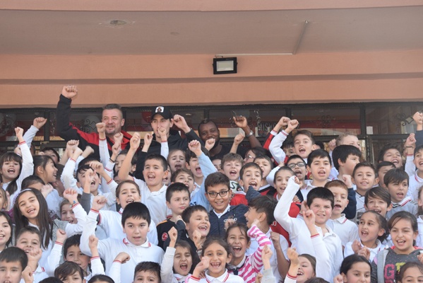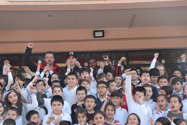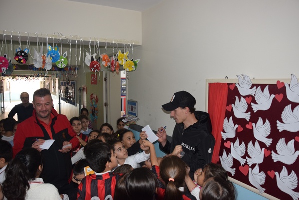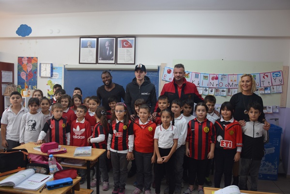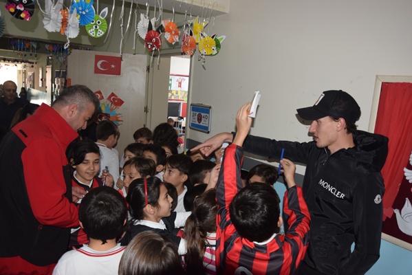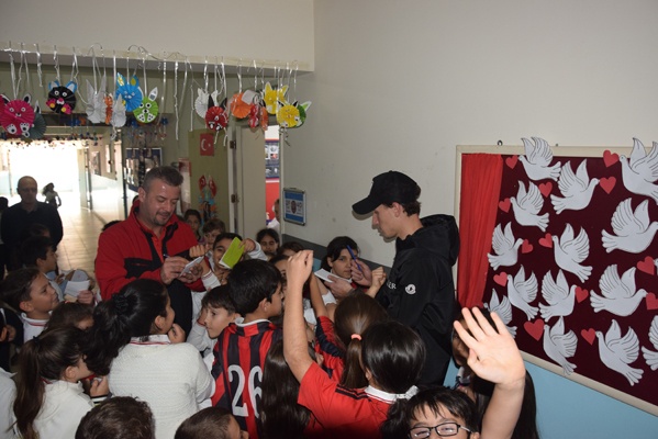 Yoğun ilgi ile karşılaşan Ekrem, Sissoko ve kaleci antrenörü Hakan Olgun öğrencilerin imza isteğini güçlükle karşılayabildi.