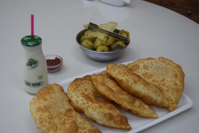 bir porsiyonda 5 adet çiğbörek oluyor. Bir porsiyon çiğböreğin yanında kendimizin hazırladığı özel sos ile yine kendimizin yaptığı turşu servis ediyoruz. Sütaş ayran kullanıyoruz.