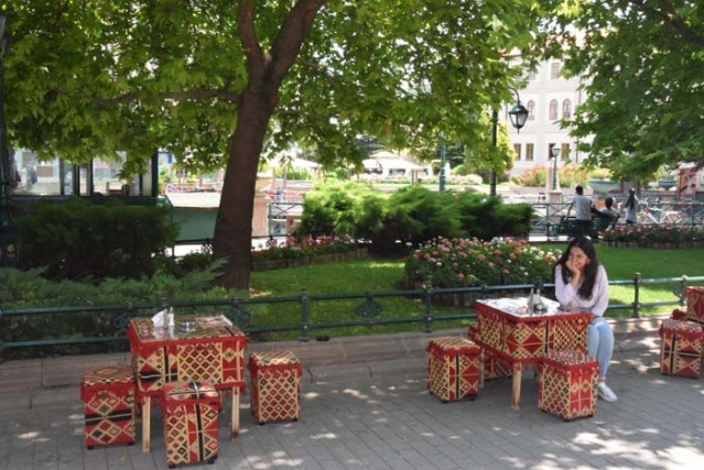 Yerli turistlerin Porsuk Çayı'nda tur atmak için bindikleri iskelenin hemen karşısı