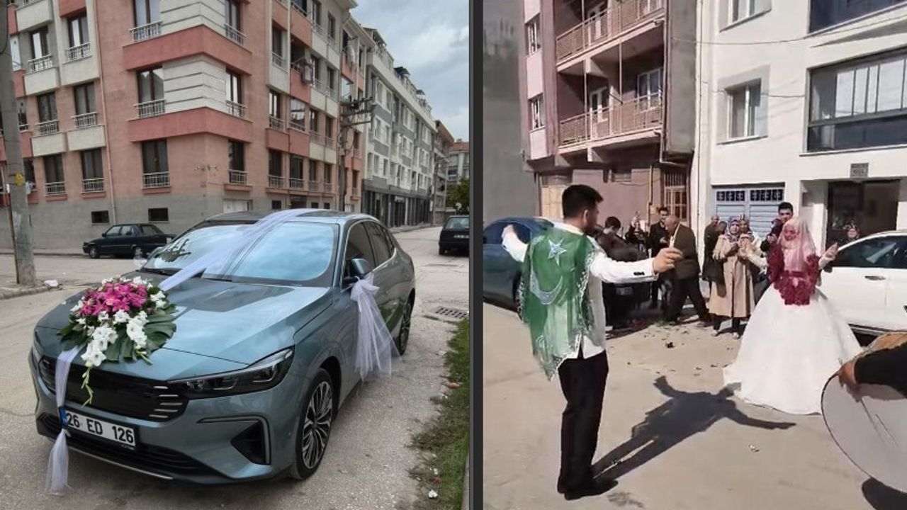 Eskişehir'de yaşayan ve dünya evine giren Büşra ile Emre Tuncer çifti, düğün arabası olarak yerli sedan araç olan TOGG'un T10F modelini süsledi.