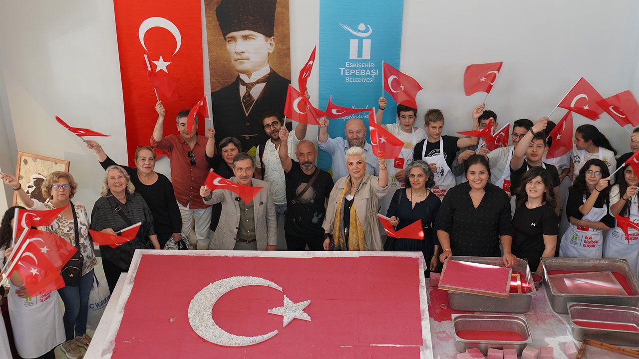 Sergi alanında ayrıca Tepebaşı Belediyesi Kağıt Geri Dönüşüm Atölyesi ekibi, Bahriye Üçok Eğitim ve Gelişim Merkezi öğrencilerinin katılımıyla geri dönüştürülmüş kağıttan 230-170 boyutunda Türk bayrağı yaptı.
