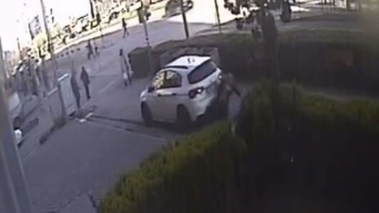 Kaldırımda yürüyen yayanın otomobilin altında kaldığı anın görüntüsü ortaya çıktı
