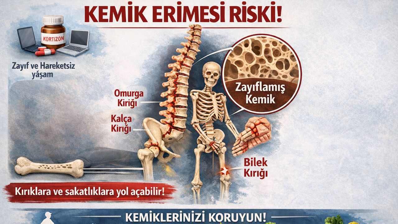 Aşırı zayıf, hareketsiz bir yaşam tarzına sahip ve kortizon kullanmış kişilerin kemik erimesi açısından risk altında olduğunu vurgulayan Endokrinoloji ve Metabolizma Hastalıkları Uzm. Dr. Esra Tutal, 'Kemik erimesi omurlarda, el bileğinde ve kalça kemiğinde kırılmalara yol açarak sakatlıklara, hatta ölümlere yol açabilir' uyarısında bulundu.