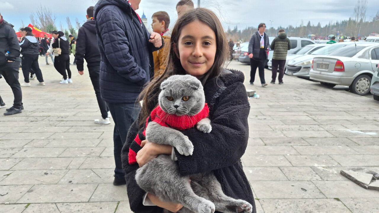 Arife Masal Sarıtaş, "Kedimin ismi Varil, kendisi 1 yaşında. Çok uyumlu bir kedi olduğu için onu da maça getirdik. Bizimle birlikte maçı takip edecek, tribüne çıkacağız. Hiç tırmalamıyor, kaçmaya çalışmıyor" dedi.