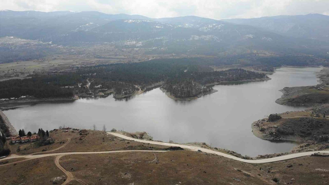 Doluluk oranı yüzde 25’ler seviyesindeki Enne Barajı, havadan da görüntülendi.