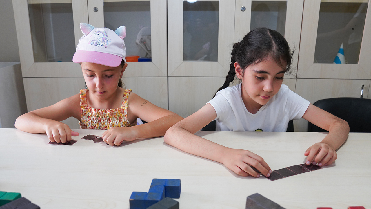 Tepebaşı Belediyesi Matematik Evi’nde eğitimlere katılan çocuklar, eğlenceli ve görsel düşünme becerisini geliştiren yöntemler ile kolayca matematik öğrenmenin keyfini yaşıyor.