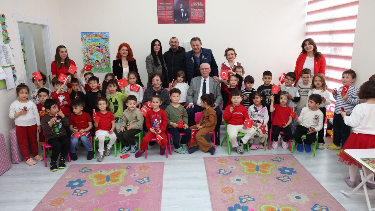 Başkan Kurt ve Şerife Aysel Erkara, ziyaret boyunca çocuklarla yakından ilgilenmeye devam ederken, kreşteki bu buluşma hem minikler hem de büyükler için hafızalarda yer edecek bir gün olarak kayda geçti.