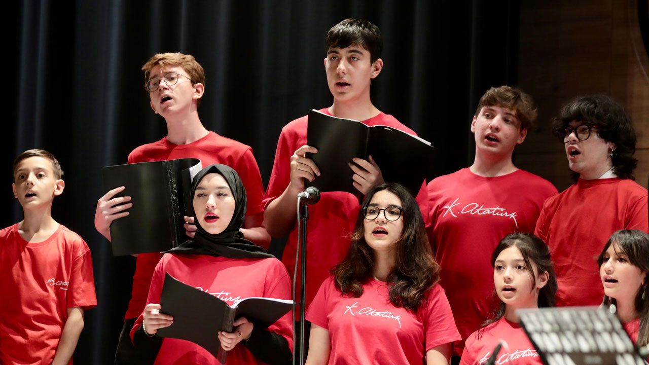 Sunuculuğunu Sunuculuk Atölyesi’nden Esra Ekim ve Hatice Alyanakoğlu Dikmen’in üstlendiği programın ilk bölümünde, genç piyanistler Ulu Önder Mustafa Kemal Atatürk’ün sevdiği eserlerden oluşan özel bir repertuvarla sahne aldı. Arhan Bera Uluboyar, Atatürk’ün en sevdiği parçalardan biri olan “Fikrimin İnce Gülü”nü piyanosuyla başarıyla icra etti. Ardından Mina Selçuk “İzmir’in Kavakları”, Ahsen Ada ise “Bilal Oğlan” adlı eserleri piyano yorumlarıyla dinleyicilerle buluşturdu. Beren Gül Aydın, “Vardar Ovası”nın piyano düzenlemesiyle salonda duygusal anlar yaşatırken, Ceren Kolcubaşı “Bülbülüm Altın Kafeste” adlı parçayı piyanoda büyük bir ustalıkla sergiledi. Ecrin Kurt’un piyano yorumuyla “Gençlik Marşı” ve Defne Işık’ın başarıyla icra ettiği “İleri Marşı” büyük alkış aldı. Elanaz Yıldırım “Biz Atatürk Gençleriyiz”, Ecrin Çelik ise “Parla” adlı eserlerin piyano düzenlemeleriyle geceye damga vuran performanslardan birine imza attı.