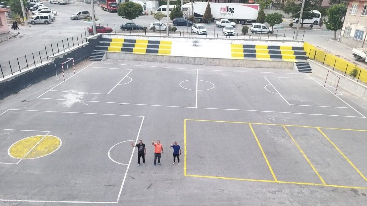 Afyonkarahisar Emirdağ Mithatpaşa Ortaokulu öğretmenleri okul içerisinde spor etkinliklerinin gerçekleştirdiği sahaların çizgilerini yenileyerek örnek bir davranışa imza attılar.