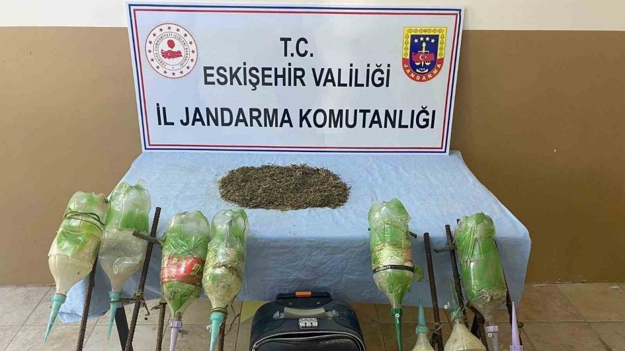 Eskişehir İl Jandarma Komutanlığı Kaçakçılık ve Organize Suçlarla Mücadele Şube Müdürlüğü (KOM) ekiplerince Sarıcakaya ilçesindeki ormanlık arazide şüpheli şahısların uyuşturucu madde elde etmek amacı ile kenevir bitkisi yetiştirdiği bilgisi alındı. KOM Şube Müdürlüğü ve Sarıcakaya İlçe Jandarma Komutanlığı ekiplerince Orman arazisinde yapılan aramada, 10 kök kenevir bitkisi, kenevir bitkilerinin sulanması için 10 adet demir çubuklara sabitlenmiş pet şişelerden oluşan sulama sistemi, ağaç altına zulalanmış valiz içerisinde 447 gram esrar maddesi ve 2 adet CD ele geçirildi. Cumhuriyet Savcısı’nın talimatıyla ele geçirilen suç ve suç unsurları üzerinde yapılan inceleme ile şüphelilerin tespiti yapılırken, konuyla ilgili soruşturma başlatıldı.