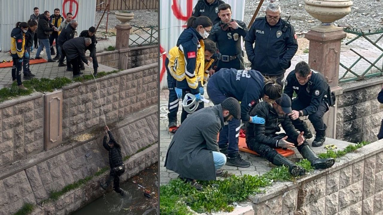 Eskişehir’de henüz bilinmeyen bir nedenle Porsuk Çayı’na düşen şahıs sarkıtılan ip ile çıkarıldı.