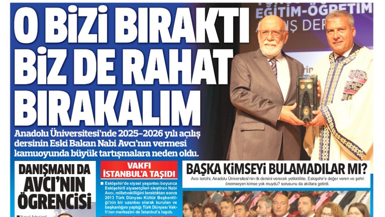 Anadolu Üniversitesi’nin 2025-2026 yılı açılış dersini eski bakan Nabi Avcı’nın vermesi, gazete tarafından manşete çekilmişti.