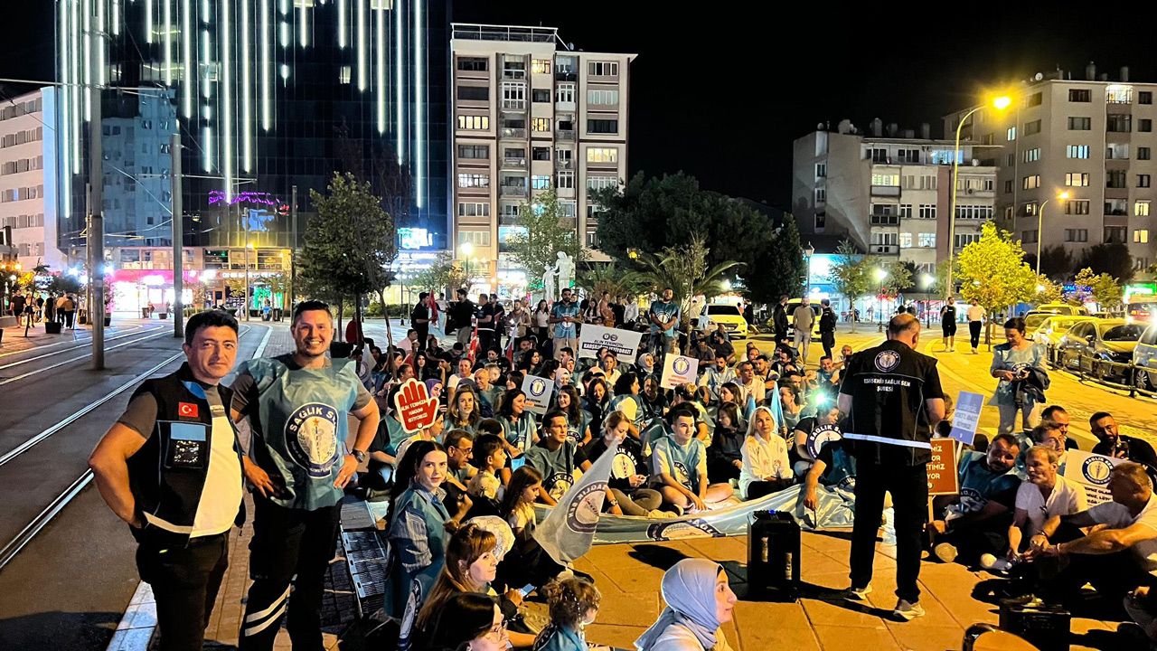 Eskişehir Sağlık-Sen şubesi sağlık ve sosyal hizmet emekçileriyle birlikte oturma eylemi gerçekleştirdi. Eylem sırasında bir basın açıklaması düzenleyen Şube Başkanı Hasan Hüseyin Köksal şu ifadelere yer verdi: