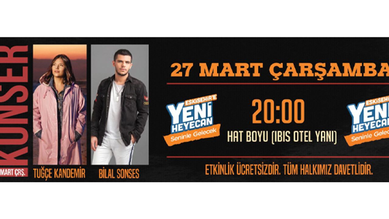 27 Mart Çarşamba günü Tuğçe Kandemir ve Bilal Sonses konserlerinde, Eskişehirli gençler unutulmaz bir akşam geçirecek. Saat 20.00’de başlayacak olan konserler, hat boyunda gerçekleşecek.