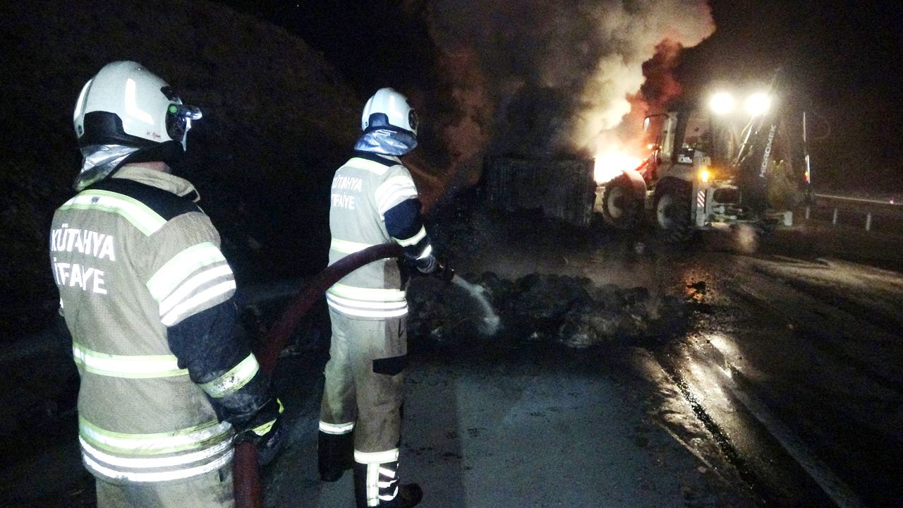 Ekipler, alev alev yanan tıra müdahale etti. Ekiplerin bir saatlik çalışması sonucu yangın söndürülürken, araç hurda yığını haline geldi. Yangın nedeniyle Kütahya-Eskişehir Karayolu bir süre araç trafiğe kapatılırken, uzun araç kuyruğu oluştu.