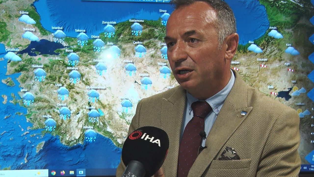 "Cuma'ya kadar olan günler boyunca Çarşamba, Perşembe hızlı bir sıcaklık düşüşü var. İstanbul'da sıcaklıklar 19 derecelere kadar düşüyor. Ankara'da Perşembe günü sıcaklıktan 16 dereceye kadar düşmesini bekliyoruz. Yine İzmir'de özellikle yarın, bugünkü kuvvetli yağışlarla birlikte sıcaklığın 18 dereceye kadar düşmesini beklemekteyiz. Bu düşüşlerle birlikte ülke genelinde sıcaklıklar mevsim normalleri altına düşecek. Bunun yanında gece sıcaklıklar biraz daha yüksek. Özellikle İstanbul'da 12-13 derece, İzmir'de 14 derece, Ankara'da 5-6 dereceler civarında. Kuvvetli yağışlarımız da var bu sistemin gelişiyle birlikte. Nerelerde? Salı günü için Marmara'nın batısı kıyıya gidiyor. Akşam saatlerine kadar kuvvetli yağışlar devam ediyor. Çarşamba günü Batı Karadeniz'in kıyı kesimlerinde, İç Ege'de, Güney Ege'de, Batı Akdeniz'e özellikle Antalya'nın doğu ilçelerinde kuvvetli ve yer yer çok kuvvetli yağışlar var. Doğu Akdeniz'de Adana, Osmaniye, Hatay'ın kıyı kesimleri, Kahramanmaraş'ın güney şeklindeki alanda da kuvvetli yağışların görülmesini bekliyoruz. Çarşamba günü Akdeniz'in iç kesimleri, İç Anadolu'nun güney ve doğusu, Doğu Anadolu'nun kuzey ve doğusu ve Doğu Karadeniz'in iç kesimlerinde lodos kuvvetli olarak esecek. Yer yer 80 km saate kadar çıkmasını bekliyoruz. Bu bölgedeki vatandaşlarımızın da bu kuvvetli rüzgara karşı tedbirli olmasını istemekteyiz. Hafta sonuna baktığımızda ise ülke genelinde yağış beklemiyoruz. Sıcaklıklar bir miktar artıyor. Ankara'da 16 dereceye kadar düşen sıcaklıkların hafta sonunda 19-20 derecelere çıkmasını bekliyoruz. İstanbul'da 21-22 dereceleri göreceğiz. İzmir'de de 24-25 derecelerin görülmesini tahmin etmekteyiz."