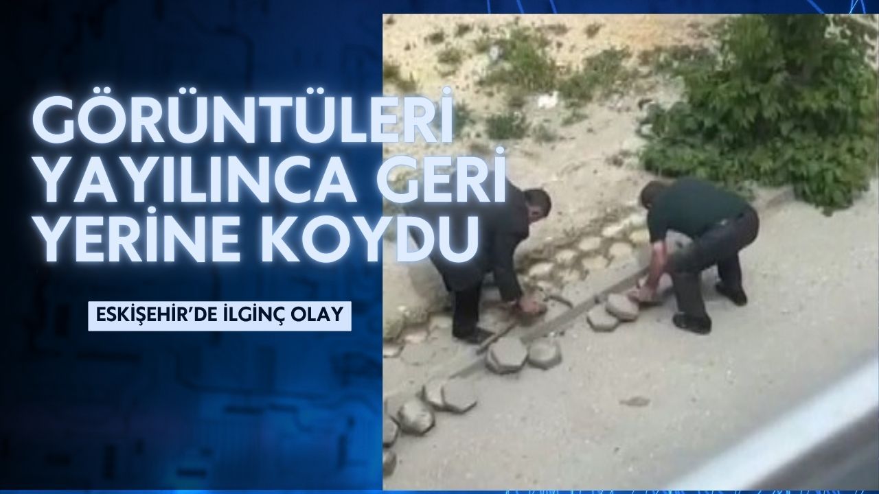 Eskişehir'de bir şahsın evinin bulunduğu sokaktaki kaldırım taşlarını köyüne götürmek için söktüğü anlar saniye saniye kayıt altına alındı. Bahse konu şahıs, görüntülerin sosyal medyada yayılmasının ardından korkup taşların bir bölümünü geri yerine koydu.