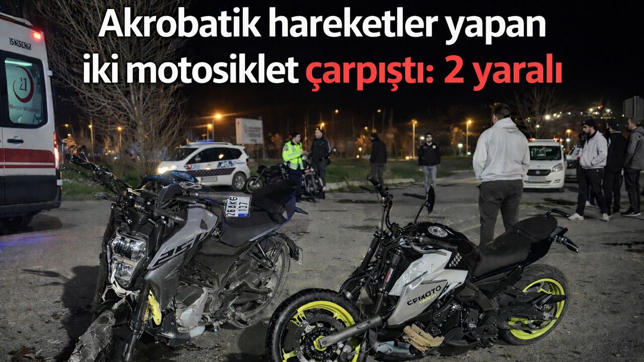 Eskişehir’de akrobatik hareketler yaptığı iddia edilen iki motosikletin çarpışması sonucu meydana gelen kazada 2 sürücü yaralandı.