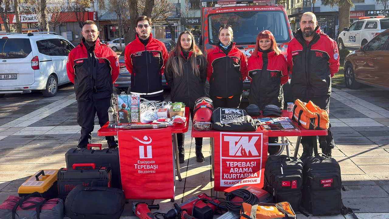 Ekip, standı ziyaret eden Eskişehirlilere de hem çalışmalar hakkında bilgi verdi hem de arama kurtarma çalışmalarında kullanılan aletleri tanıttı.
