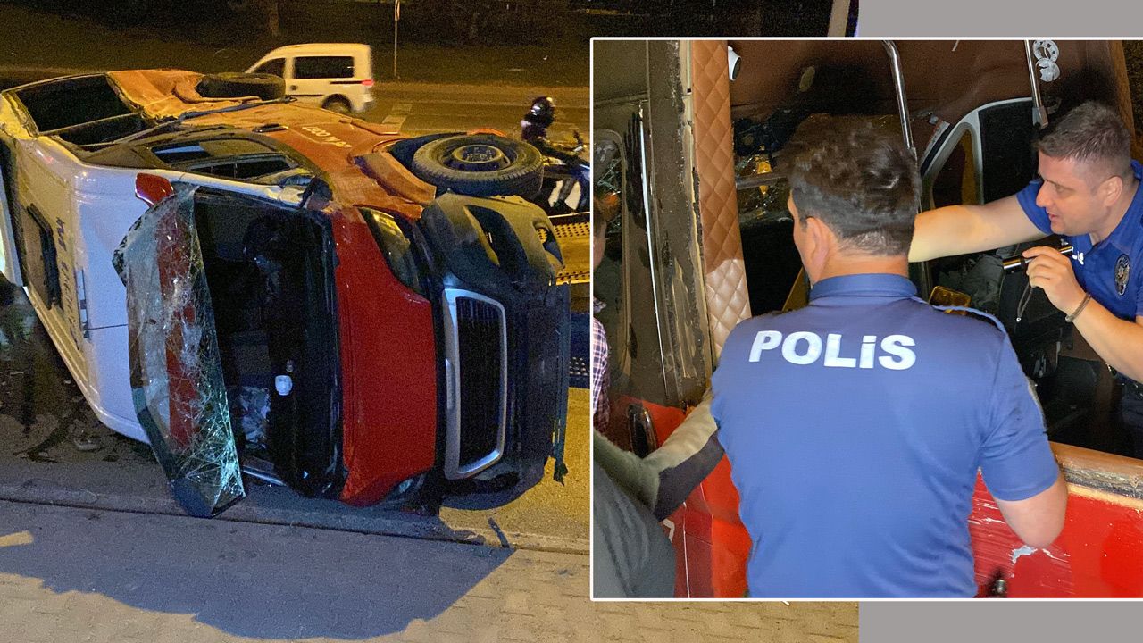 Eskişehir'de orta refüjdeki taşlara çarparak takla atan minibüs hurdaya dönerken, kazada yaralanan sürücü hastaneye kaldırıldı.