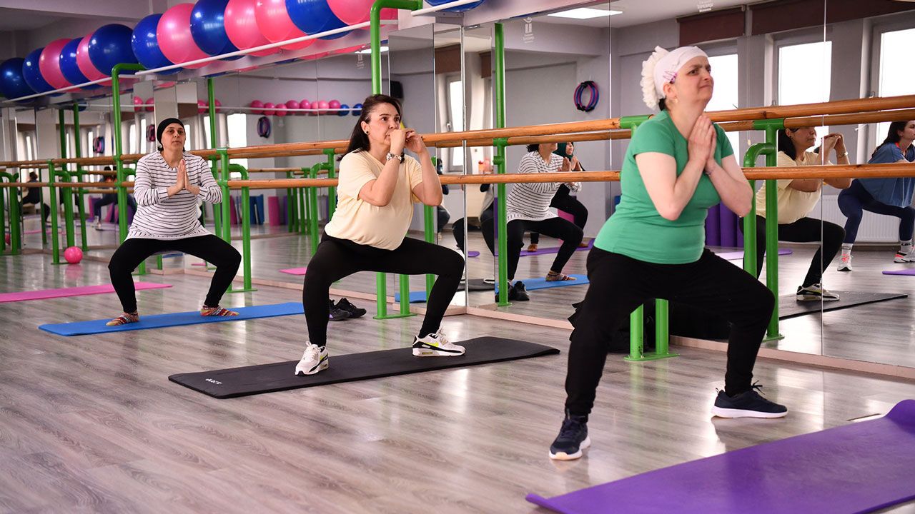 Tepebaşı Belediyesi Yunus Emre Spor Tesisleri yetişkin kursları yoğun katılımla devam ediyor. Fonksiyonel antrenman programına katılan kadınlar, keyifli vakit geçirmenin yanı sıra spor yapıyorlar.