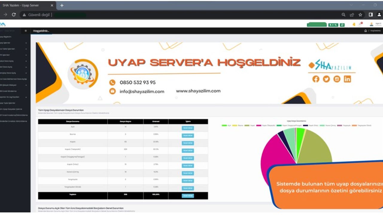 Uyap Server, Bilgisayarınıza takılı e-imza ile Uyap Avukat Portal’a bağlanarak taraf olduğunuz Uyap dosyalarında işlem yapmanızı sağlayan SHA yazılım tarafından geliştirilmiş yapay zekâ ürünü bir programdır.